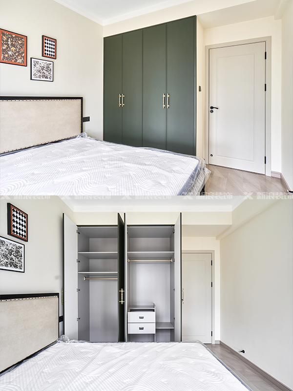 門(mén)墻柜一體,臥室根據喜好和需求用煙熏尤加利+象牙灰和墨綠色搭配,獨特又有個(gè)性;三個(gè)臥室都做了充足的衣柜收納,?掛衣區、疊衣區、被褥區、小件區……整潔有條理!