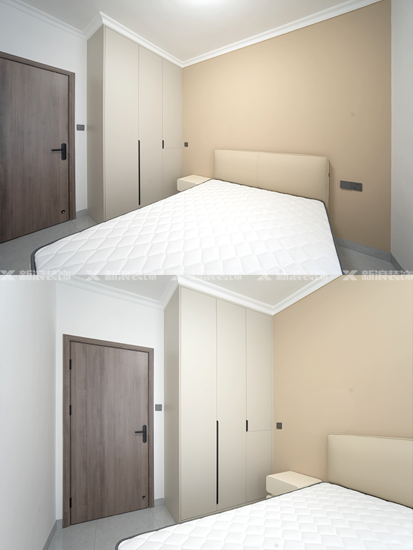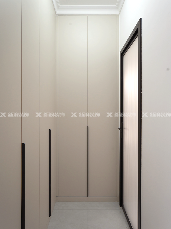 定制:柜體18厚杉木芯板;柜門(mén)PET膚感。包含百隆五金+掛衣桿+抽屜等。