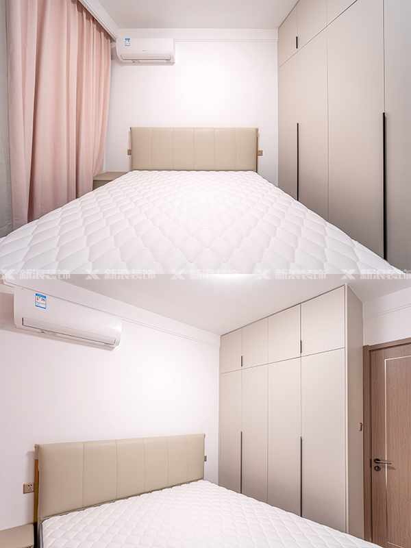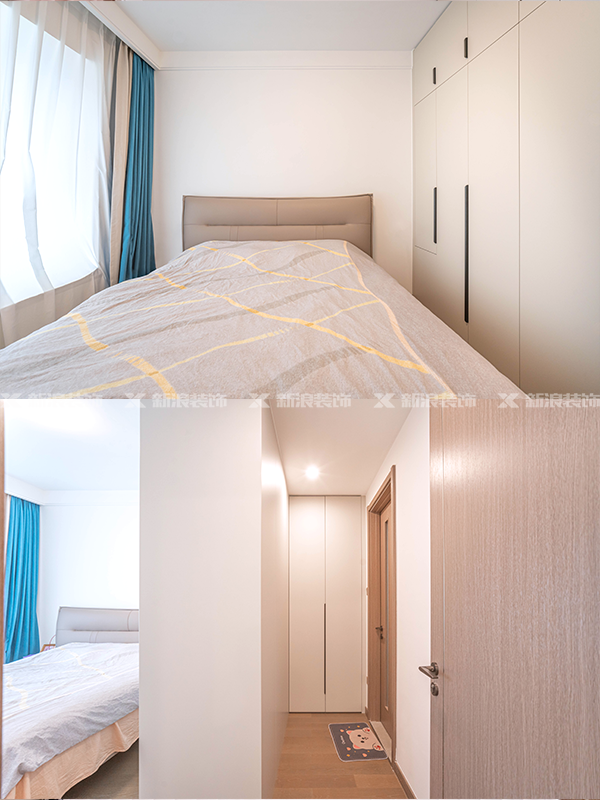 主臥做了轉角衣帽間,充分利用了主臥的空間,同時(shí)也解決了衛生間對著(zhù)床頭的風(fēng)水問(wèn)題。