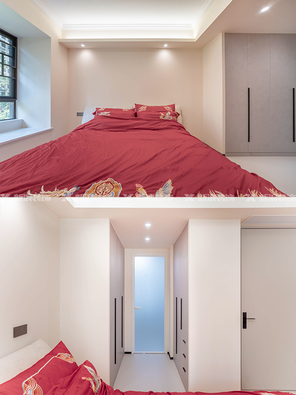 全屋高端定制:柜體板材18厚杉木實(shí)芯板,柜門(mén)有pet膚感、高光、超晶、五金使用原裝進(jìn)口奧地利百隆五金