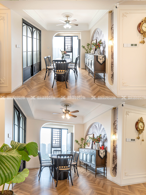 石膏線(xiàn)、角花的運用,搭配復古木質(zhì)家具,更有復古浪漫的氛圍感