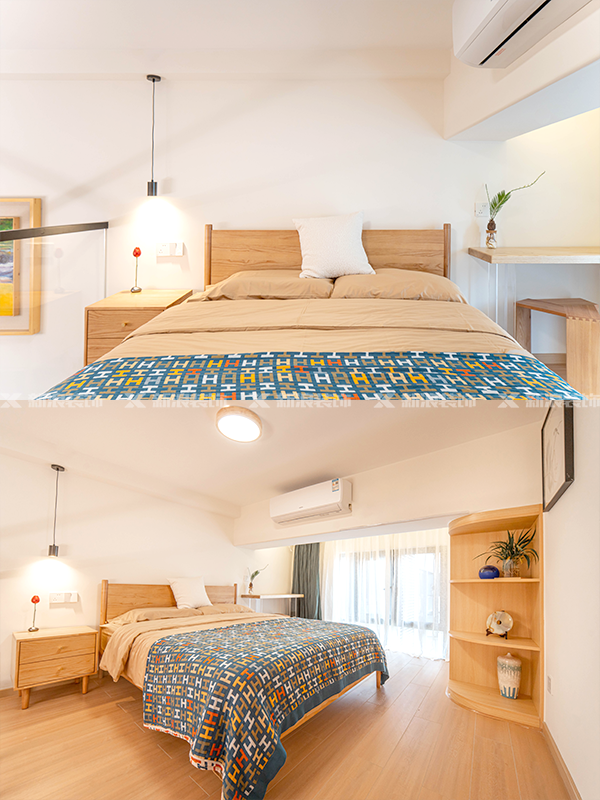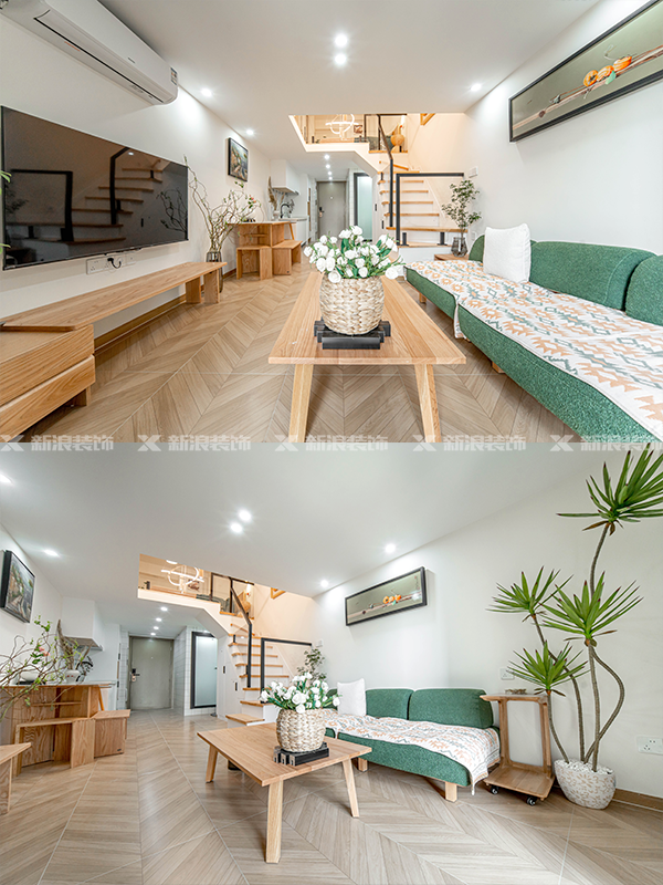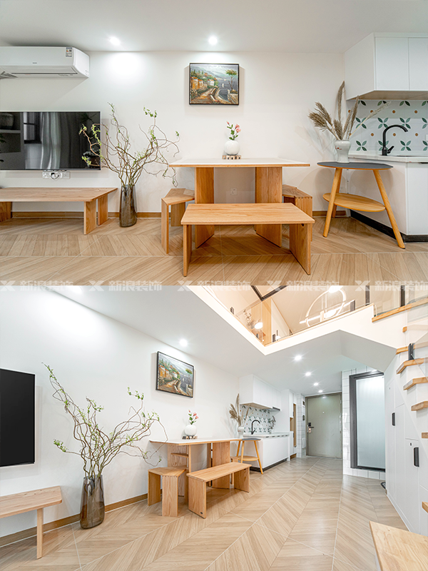 整體采用原木和白色,搭配文藝的家具,整體更統一