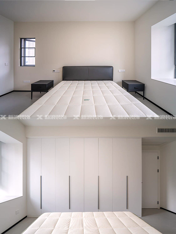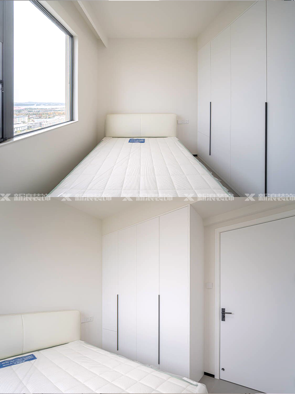 臥室做打造極簡(jiǎn)的氛圍,床尾整墻一門(mén)到頂衣柜,簡(jiǎn)約又高級。