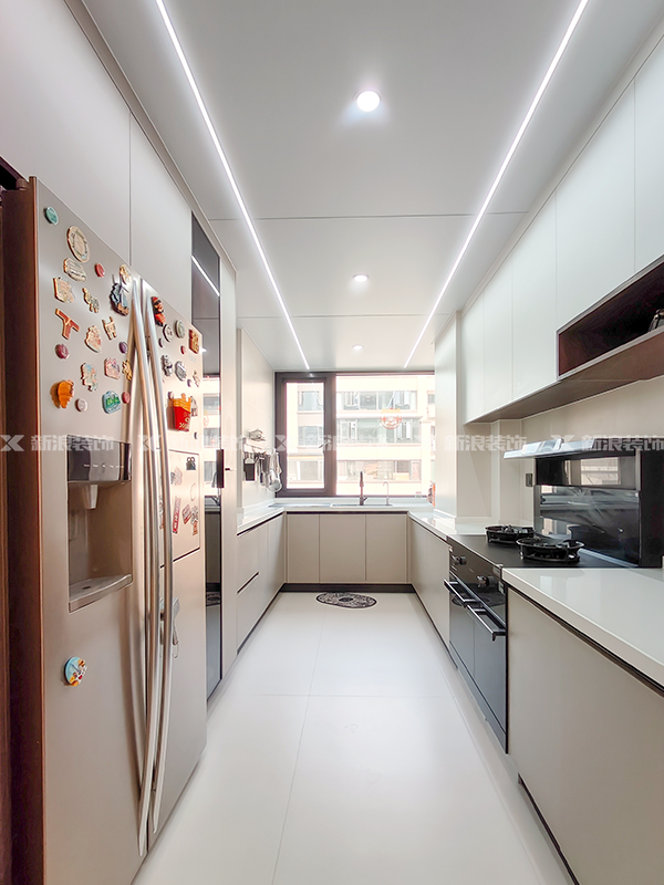 廚房做小U字布局,洗切炒動(dòng)線(xiàn)合理,高低臺設計不累腰