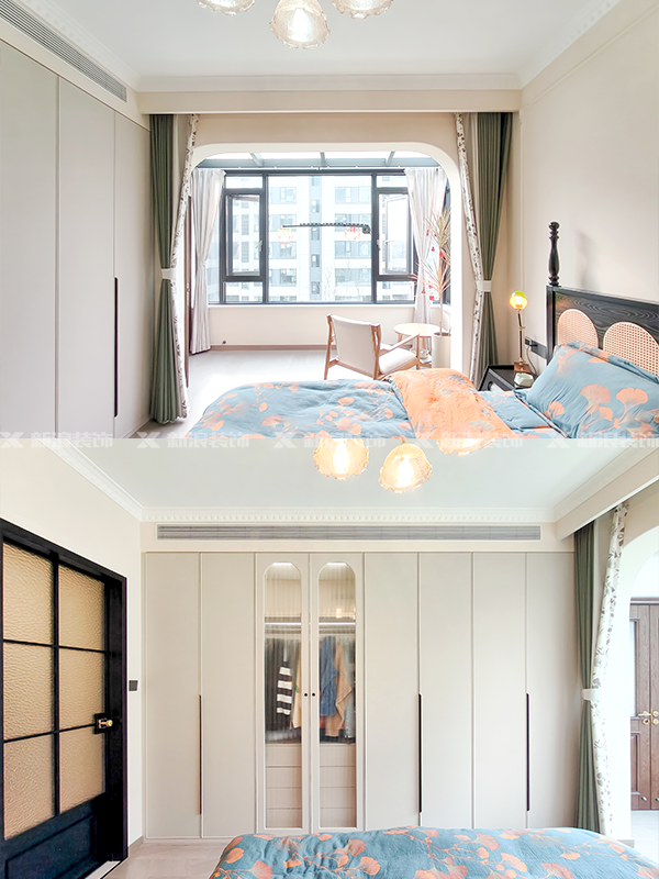 主臥不做隱形門(mén),雙開(kāi)復古門(mén)移到陽(yáng)臺位置,原先的進(jìn)門(mén)位置做梳妝臺,空間利用up!