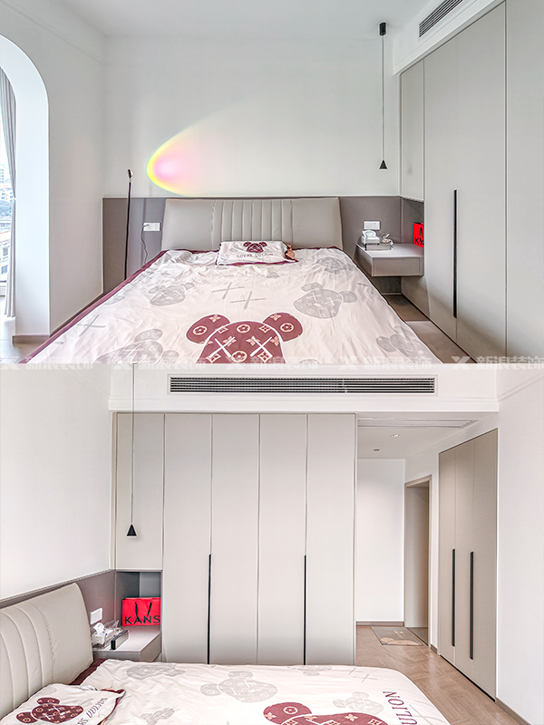 做了獨立舒適的主衛空間,臥室也是盡可能做了多的滿(mǎn)墻衣柜,增加儲物。