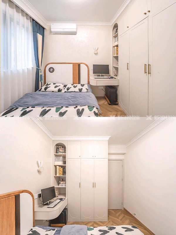 全房定制柜采用同色、同造型,搭配金屬簡(jiǎn)約拉手,法式浪漫細節滿(mǎn)滿(mǎn)!根據需求做分隔或者一門(mén)到頂搭配,實(shí)用又美觀(guān)。
