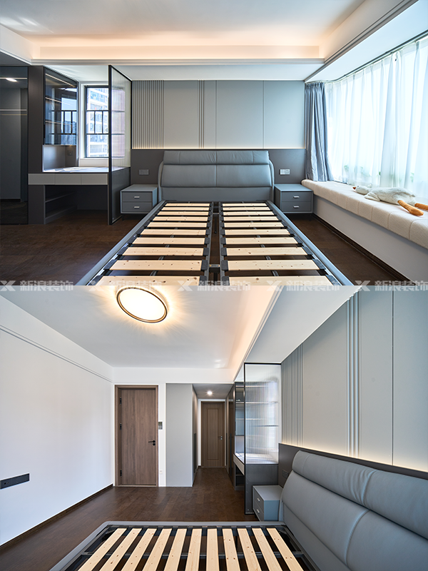 臥室衣柜做了一門(mén)到頂的衣柜,拉手用的極簡(jiǎn)卡縫拉手,簡(jiǎn)約又不失檔次