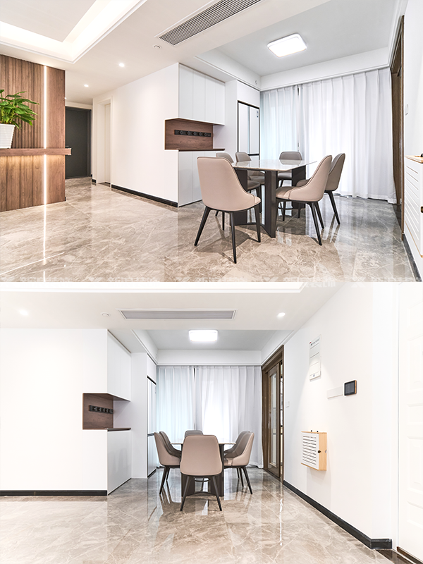 本案是精裝房,客戶(hù)對部分硬裝做拆除重新設計,結合原有地面顏色進(jìn)行整體搭配。
