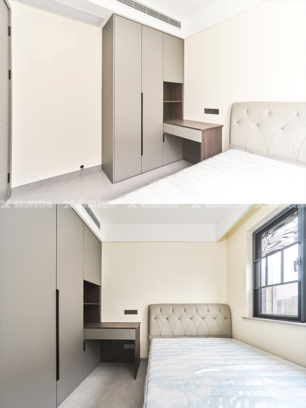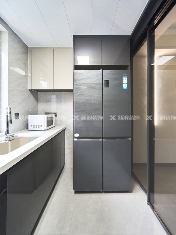 全房做霧面灰色定制,和衣柜、餐邊柜、櫥柜同色系,整體風(fēng)格一致,更有設計感